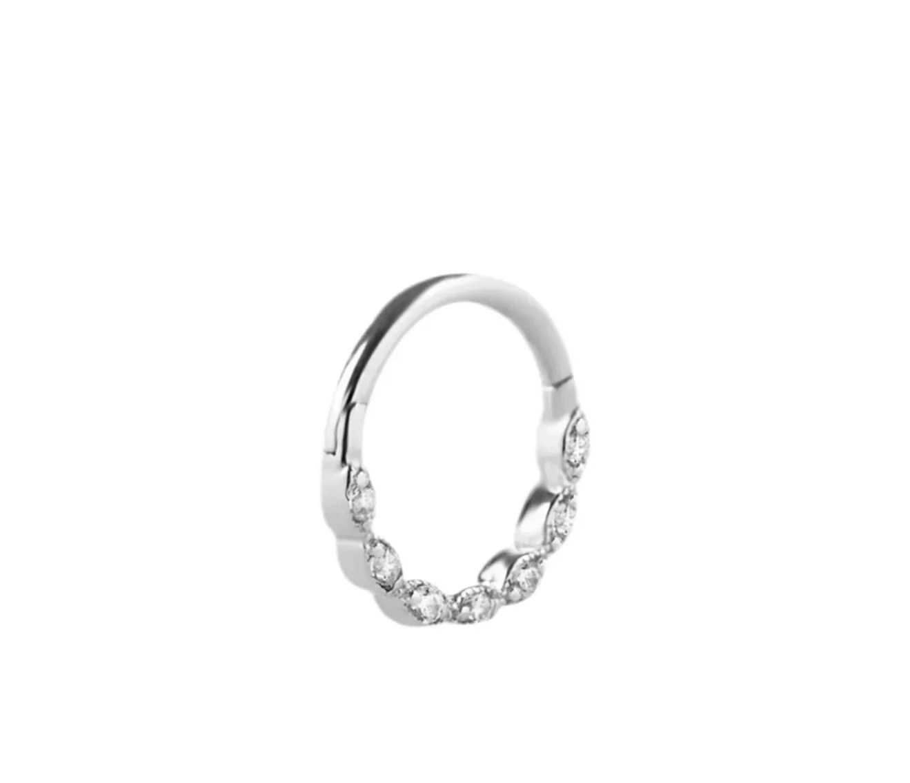 עגיל פירסינג דאיית עשוי זהב 14k משובץ זרקונים.
